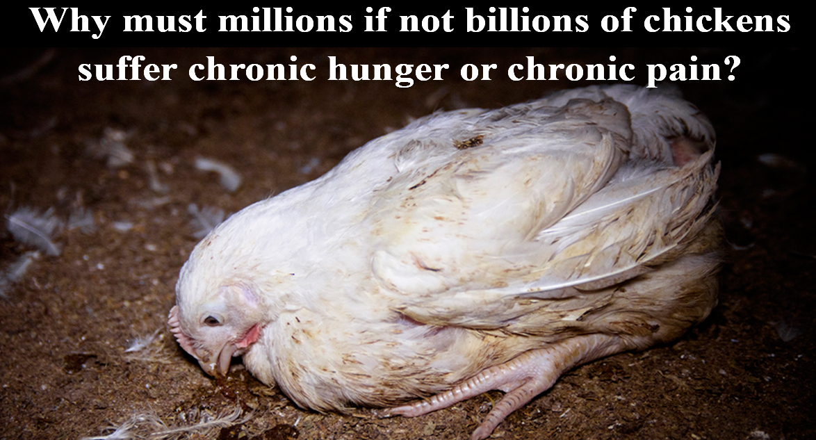 Several decades ago, 1.2% of chickens suffered from Tibial Dyschondroplasia. Today, 50% of the chickens suffer from this human-created disease.