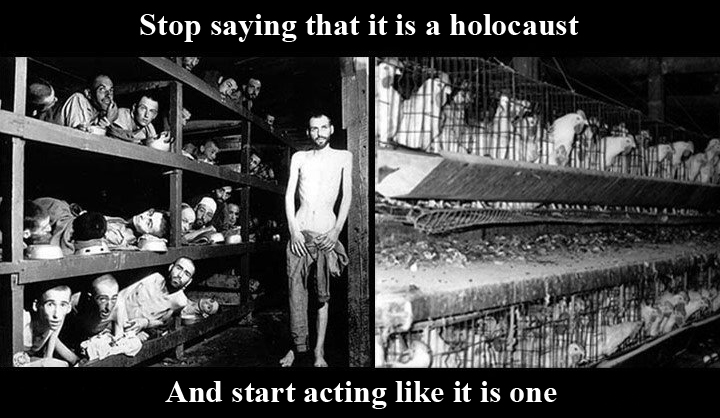 Among themselves, activists point out that the animal holocaust is much worse than any human holocaust in history, however, the partisan fighters in the second world war didn’t organize leafleting events to stop the massacre.