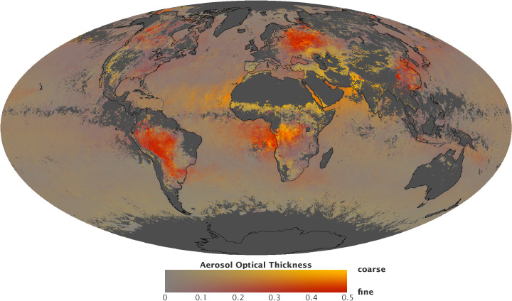90% of the aerosols are of natural origin like desert dust, volatile organic compounds from vegetation, pollen, volcanic ash and soot from natural forest fires. The other 10% are of anthropogenic origin such as emissions from vehicles, power plants, coal combustion for heating houses and biomass burning which is a common method of clearing land and consuming farm waste, producing smoke comprised mainly of organic carbon and black carbon.