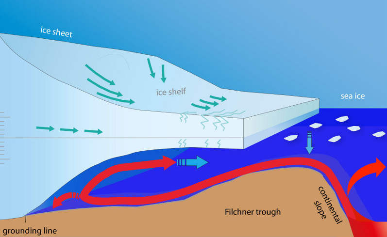 Another effect of these stronger winds is that they accelerate ice shelf melting as they drag more warm water that enter beneath them.
