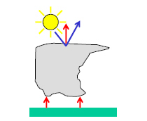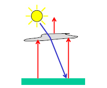 - Reflection from above - the thicker the clouds the more they reflect radiation back to space (cooling effect).