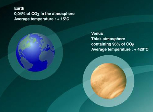 The total amount of carbon in planet Venus is much like the Earth's however the atmosphere of Venus is 96.5% CO2 by volume, while the Earth's atmosphere is composed merely of 0.04% CO2.