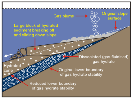 Those methane hydrates are kept locked in place and tend to cement sediments together, creating an impermeable layer.