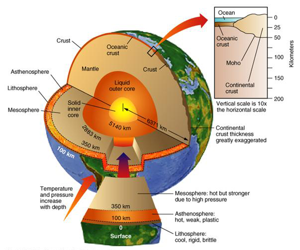 The force with the most powerful potential on earth is found within it. The earth is getting hotter with depth, reaching about 7000°C in the center of its core, which is hotter than the surface of the sun. This heat, generated from the decay of radioactive materials in the core, heats the rocky surrounding layer called the mantle. The heat creates a movement in the mantle which correspondingly causes a movement in the layer above it – the earth’s crust (the surface of the earth). The crust is not a continuance shell but is built of giant pieces called tectonic plates, and the mantle movement causes these plates to move.
